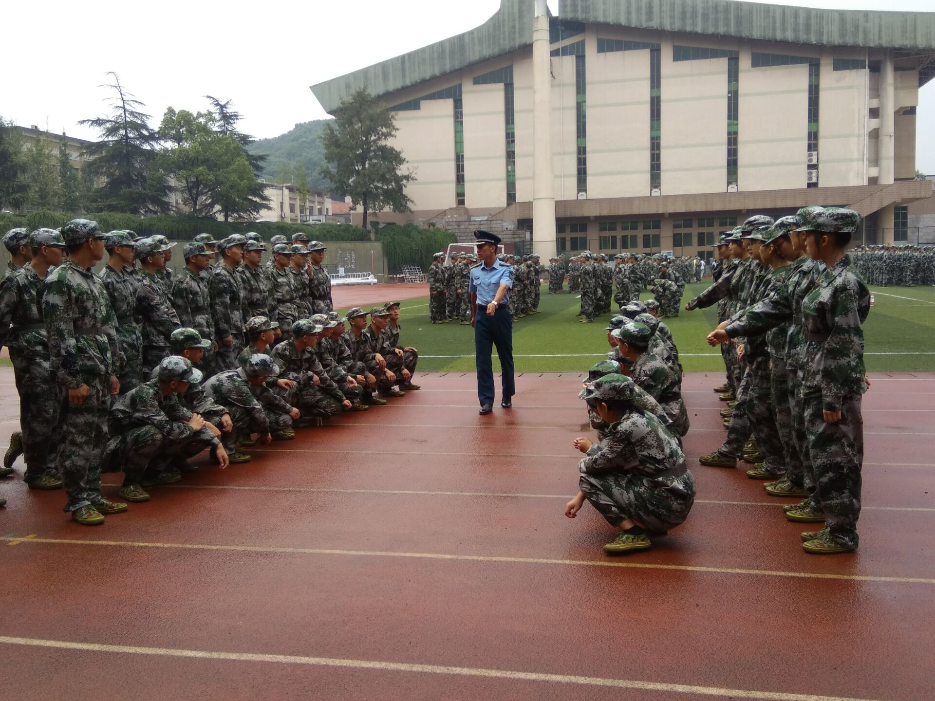 绿茵场上,张教官有时会严肃认真、一丝不苟地纠正着新生们尚未达到标准的动作,有时又会猝不及防地讲一个笑话给怠倦的新生们。教官总能在不断提高自己的同时又能以身作则带领着新生们艰苦训练,奋发向上。这就是他们的光辉所在,照亮了别人,也照亮了自己。