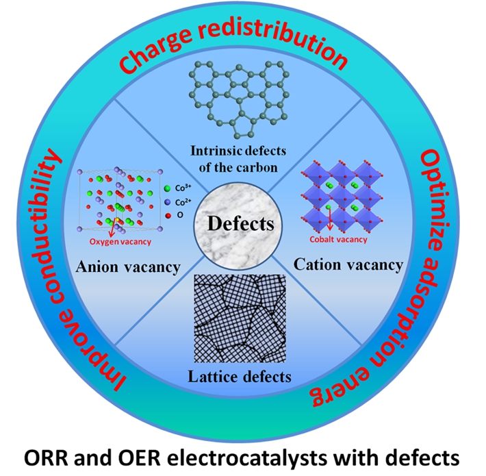氧气电催化剂,包括氧气还原(ORR)和氧气析出(OER)电催化剂是新一代能源器件的重要组成部分。因此,开发设计高效ORR、OER电催化剂,并理解反应机理就显得尤为重要。尽管各种各样的电催化剂被广泛的报道,但是对于催化剂的活性起源还有一定的争议。通常情况下,研究人员将活性增强归结于大的比表面积、高导电率、特殊的晶面结构、甚至模糊的协同效应,而往往忽视了材料本身缺陷所起的积极作用。