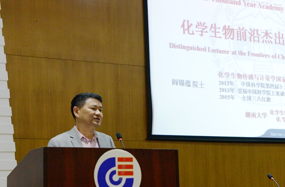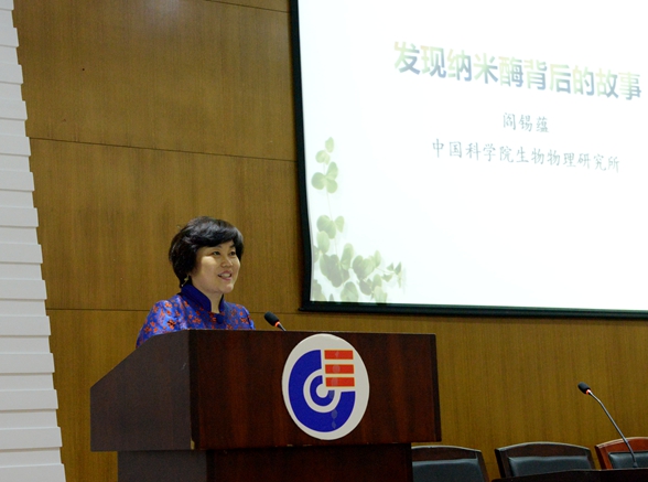 2017年10月17日,应化学生物传感与计量学国家重点实验室谭蔚泓主任邀请,中国科博彩平台生物物理所研究员、博士生导师阎锡蕴做客“千年学府论坛--化学生物前沿杰出学者讲座”,作题为“发现纳米酶背后的故事”的学术讲座。副校长谭蔚泓主持讲座,全校200余名师生参加。