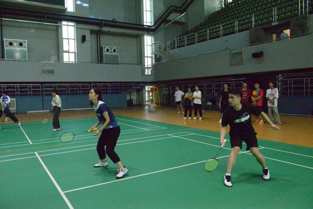 体育馆拉开帷幕,共有16支队伍参赛,设有男单、混双、女双、混双、男双五个比赛项目。比赛首先进行的是小组赛,本着“友谊第一,比赛第二”的原则,各个队伍斗志昂扬,展开了激烈的比拼,展示了化工院学子拼搏进取的风采。经过一上午角逐,最终由小组赛中积分排名靠前的队伍进入八强淘汰赛。