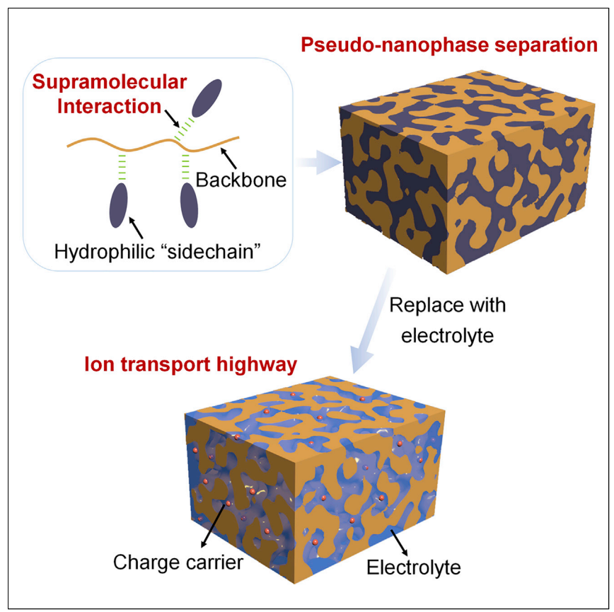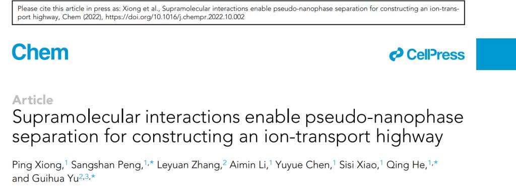 何清教授团队在利用超分子化学策略构筑高速离子传输通道研究中取得重要进展,相关研究成果“Supramolecular interactions enable pseudo-nanophase separation for constructing an ion-transport highway”在Chem上发表。