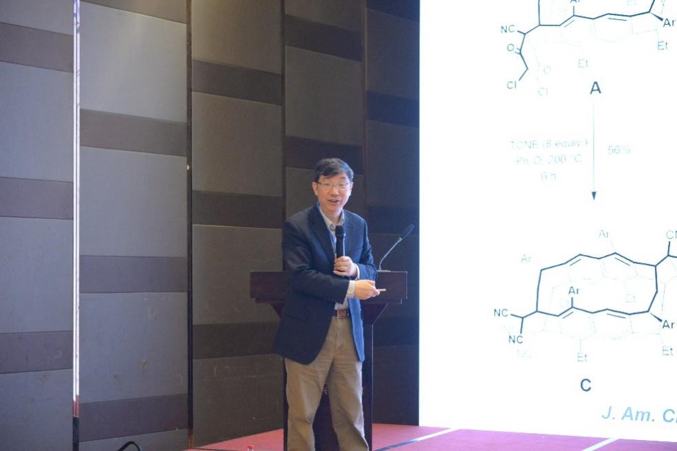 在为期两天的论坛专题报告中,黄乃正院士、林国强院士、涂永强院士、谭蔚泓院士、马大为院士、王梅祥院士分别就《手性二羟基四苯并环辛四烯-合成与应用》《探索合成化学助力中药创新药物研究》《氮杂螺环催化剂的设计及其在天然产物不对称合成中的应用》《分子元素》《铜催化的偶联反应》《新奇环带分子化学》等主题作报告,展示前沿学术成果。与会专家学者介绍自己的最新研究成果和科研进展,共同探讨有机化学学科发展。