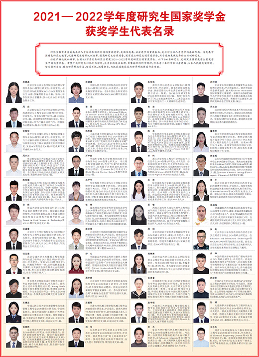 《人民日报》刊登的100名研究生国家奖学金获奖学生代表是全国4.5万名2021-2022学年度研究生国家奖学金获得者中的优秀代表。