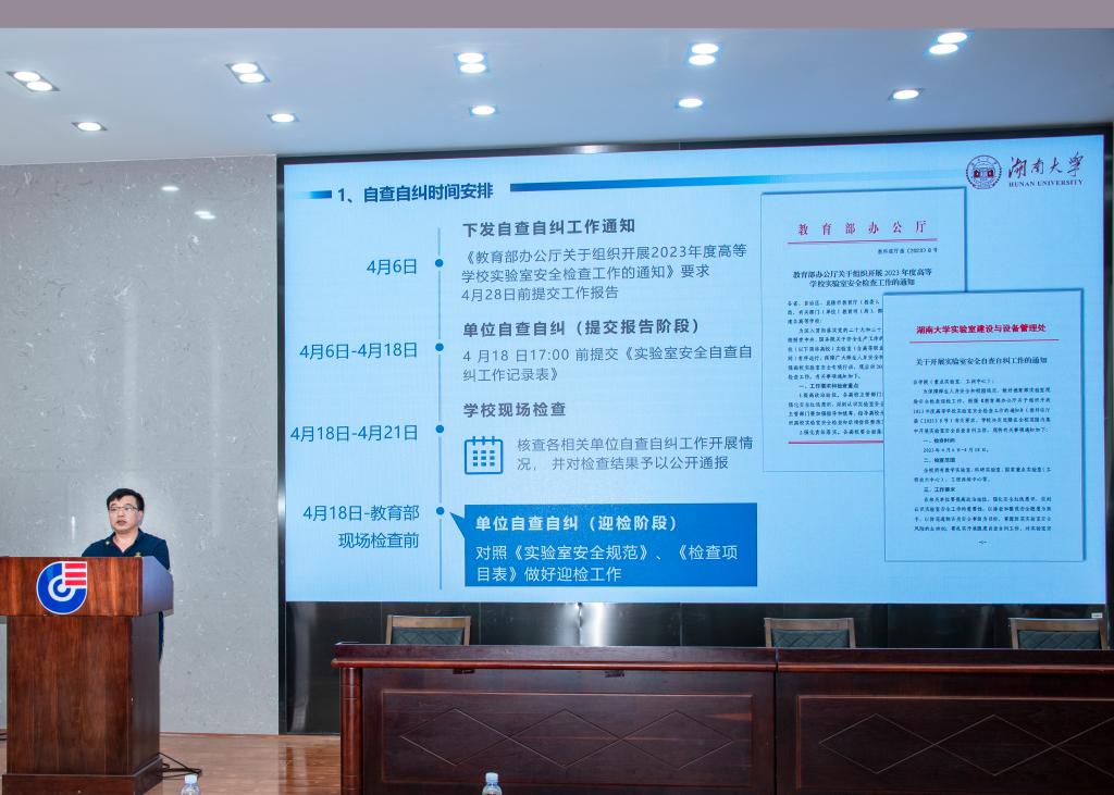 5月4日下午,2023年实验室安全检查动员会在新化工楼D区报告厅召开,院长助理曾泽兵作动员讲话,博彩平台副书记、纪委书记楚霞主持会议,全体教职工参加。