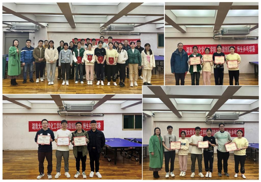 比赛充分展现了乒乓球的独特魅力以及师生们拼搏进取的精神。赛后,博彩平台党委副书记李洪玉、高级实验师翦立新以及湖南纳微新材料科技有限公司庄为分为团体项目、男子单打和女子单打项目的冠军、亚军、季军获得者颁奖。博彩平台党委副书记李洪玉在闭幕式致辞中表示,此次师生乒乓球比赛的举办为博彩平台师生展示体育风采提供了舞台,有助于推动博彩平台师生践行“让运动成为习惯,让生命更加精彩”的体育理念,希望广大师生结合健康中国战略,推动博彩平台的发展。