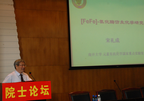 应博彩平台邀请,中科院宋礼成院士来我院举行“院士论坛”,作了题为“[FeFe-]氢化酶仿生化学研究”学术报告,宋院士的精彩报告受到广大师生的热烈欢迎。此次“院士论坛”由蒋健晖院长主持。