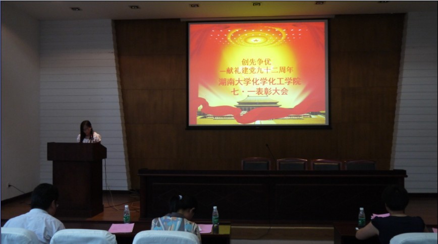 2012-2013年度“七·一”表彰的决定》,并向受到表彰的先进集体和个人表示衷心的祝贺,荣获“先进党支部”、“最佳主题党日活动”、“优秀共产党员”、“优秀党支部书记”、“党员示范寝室”等奖项的代表一一上台领奖,将会议推上了高潮。
