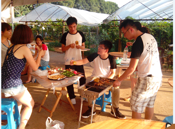 在进行了活泼有趣的游戏后,各小组内分工合作开始烧烤BBQ。一顿美味过后,已进入傍晚,同学们互相帮助搭帐篷,同时有细心的同学帮忙用手电筒照明,给大家喷洒花露水驱蚊。在休息时,团支书还不时地提醒大家要注意随身财物,夜晚不要着凉等事宜。