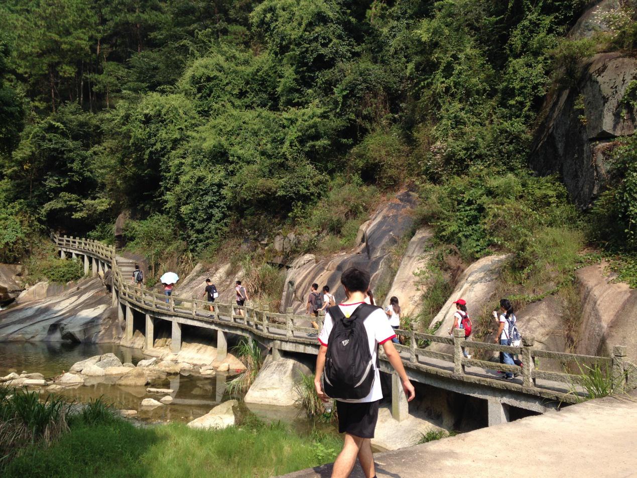 从半山亭越往上走,我们的速度越来越慢了。为了防止大家走散,队伍前面体力好的同学主动放慢速度,班里男生主动为女生背行李。这些细节都体现了我们化基1201班的凝聚力,同学之间互帮互助,团结友爱。也正是通过这样的机会,更加巩固了同学之间的感情,这也是这次旅行的主要目的之一。
