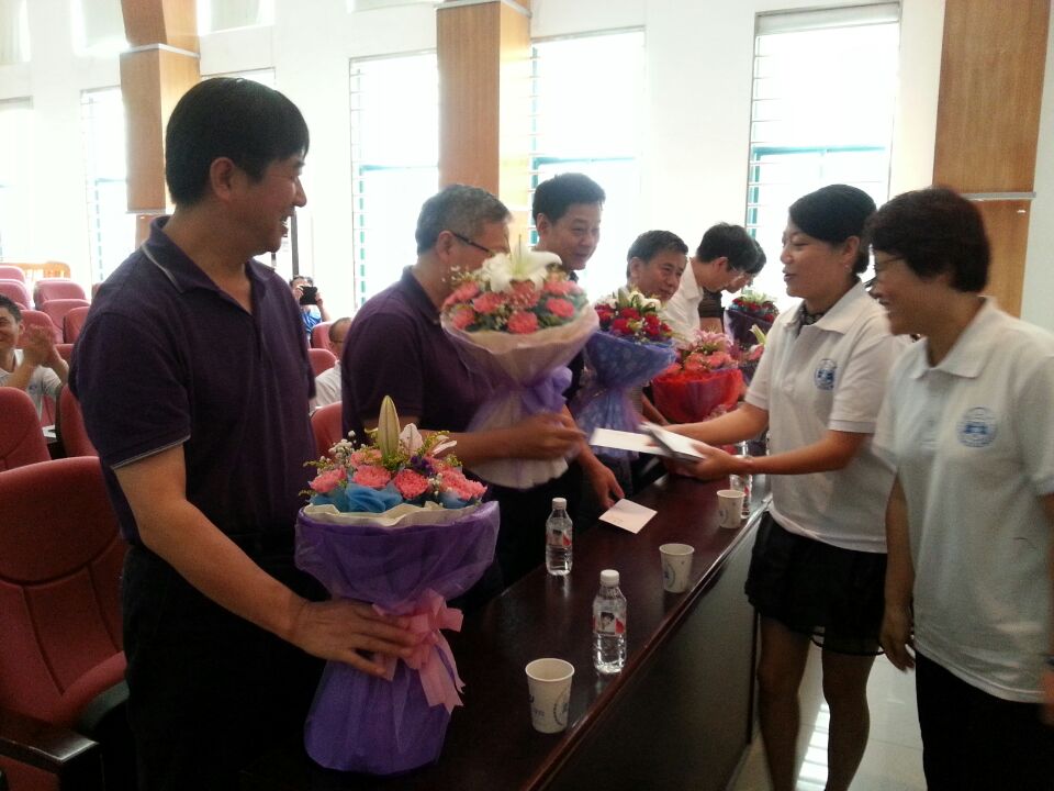 接着,由90级的学生代表向当年的老师们献花,学生代表们虽都已过而立之年,但仍掩饰不住内心的激动之情。一转眼阔别多年,再见到恩师心中肯定是涌出千言万语。90级校友们一边献花,一边和老师们交谈,谈这些年的经历、和对老师同学的想念。一时间场上气氛达到最高潮。笔者看见场上师生真挚热烈的交流,也感到十分感动。