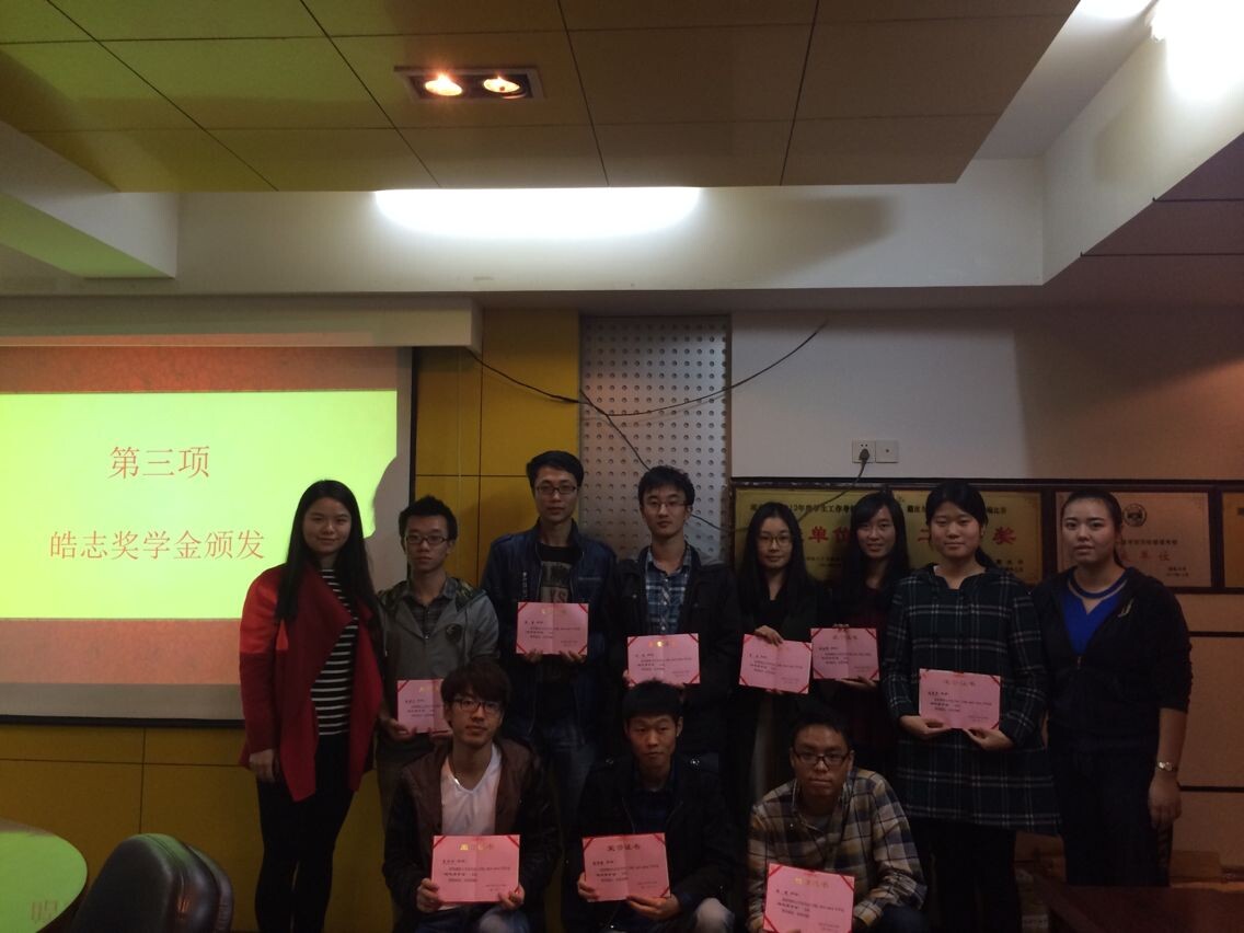 为增强学生学习动力,鼓励学生全面发展,同时借此机会宣传企业影响力,湖大化工院联合皓志、光华两企业设立奖学金制度,以表彰成绩优异的杰出同学。我院对此事十分重视,陈书记亲自到场并作出了重要讲话,同时到场的还有11级辅导员李辰、13级辅导员曾芷兰、14级辅导员刘世明、研究生辅导员刘卓以及所有获奖同学。