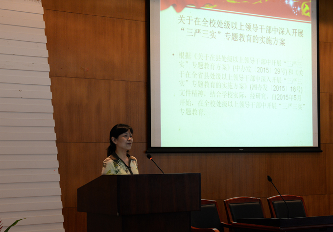 党委于6月9日下午在院办报告厅举行了以“坚持群众路线,践行‘三严三实’,为博彩平台发展凝聚动力”为主题的“三严三实”专题教育活动。博彩平台处级以上领导干部、教工和学生党支部各支部书记及支部委员以及学工办老师参加了此次会议。