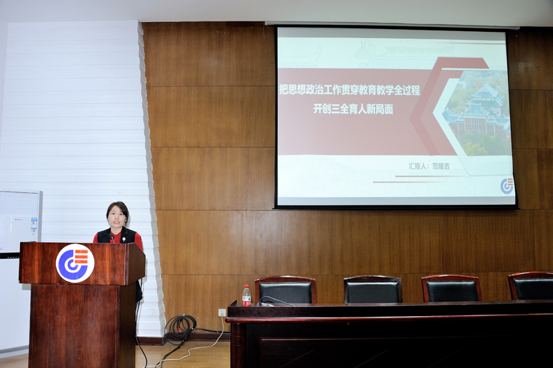 接下来博彩平台党委副书记、纪委书记范媛吉同志以《把思想政治工作贯穿教育教学全过程开创三全育人新局面》为题,与全体参会人员一起认真学习了习近平总书记在全国高校思想政治工作会议上的讲话、习近平总书记在全国教育大会上的讲话和习近平总书记在学校思政理论课教师座谈会上的讲话等重要文件精神,并介绍了兄弟院校在思政工作方面一些好的做法和经验。