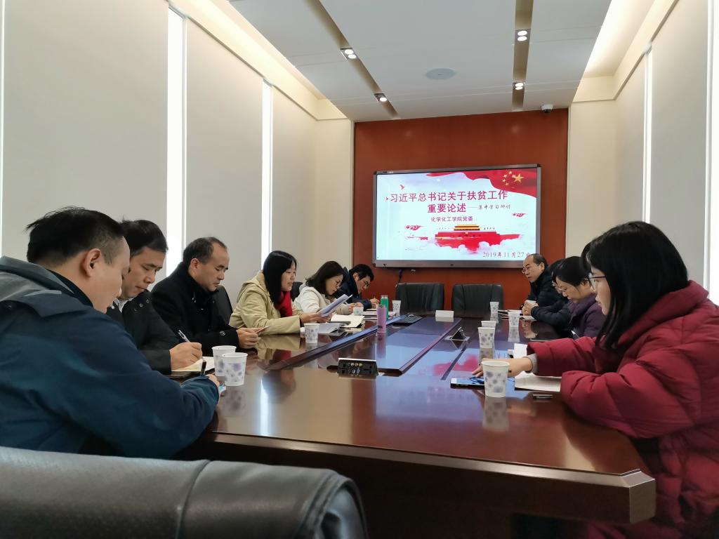 王玉枝指出党的十八大以来,以习近平同志为核心的党中央把脱贫攻坚摆到治国理政突出位置,提出精准扶贫方略,全面打响脱贫攻坚战。党的十九大进一步把精准脱贫列为全面建成小康社会三大攻坚战之一作出部署。为了全面打赢这场攻坚战,习近平总书记亲自挂帅、亲自研究、亲自部署、亲自推进、亲自督战,锲而不舍抓扶贫,充分彰显了我们党不忘初心、牢记使命、为民造福的大情怀大担当。王玉枝带领大家从习近平扶贫思想的形成过程、科学内涵、历史贡献三个方面进行了认真学习,并回顾了博彩平台党委和各党支部在学校定点扶贫单位隆回白水洞村开展的工作情况,要求大家自觉用习近平总书记关于脱贫攻坚重要论述精神指导实践,推动后期扶贫工作,确保如期打赢脱贫攻坚战。