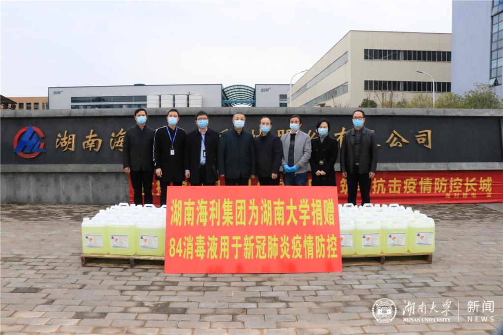 2月18日,湖南海利高新技术产业集团公司向我校捐赠2吨84消毒液,用于新冠肺炎疫情防控。
