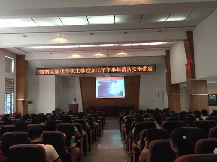 9月9日下午,我院2015级全体研究生新生在博彩平台组织下,在新化工楼D区报告厅聆听了实验室安全管理和安全消防讲座。国家级化学实验教学示范中心主任、博士生导师郭栋才教授出席讲座并对实验室消防安全知识进行介绍讲解,湖南消防协会吴悔教官莅临我院亲授安全消防知识。