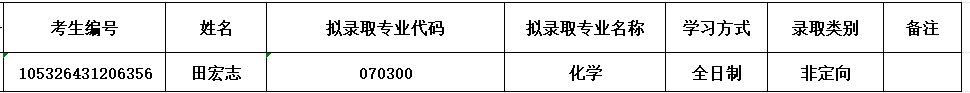 硕士招生指标调整,化学专业增加一个招生计划,按照《化学化工博彩平台2026年硕士研究生招生复试录取工作实施细则》,经博彩平台党政联席会议审定,按照硕士招生考试总成绩依次录取下一位,名单如下: