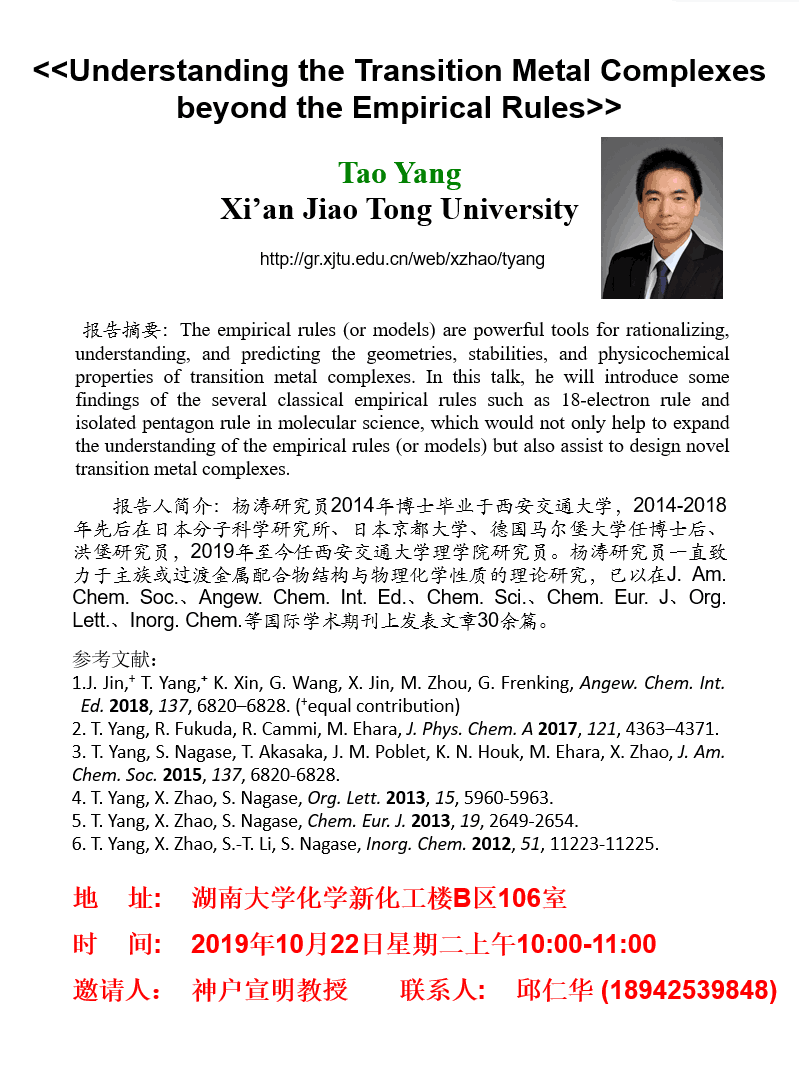 2019年10月22日西安交通大学杨涛教授学术报告会