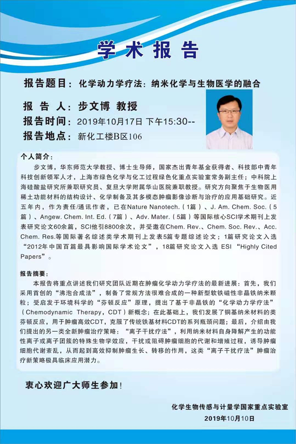 2019年10月14日美国太平洋生物科学公司钱玉峰博士学术报告会